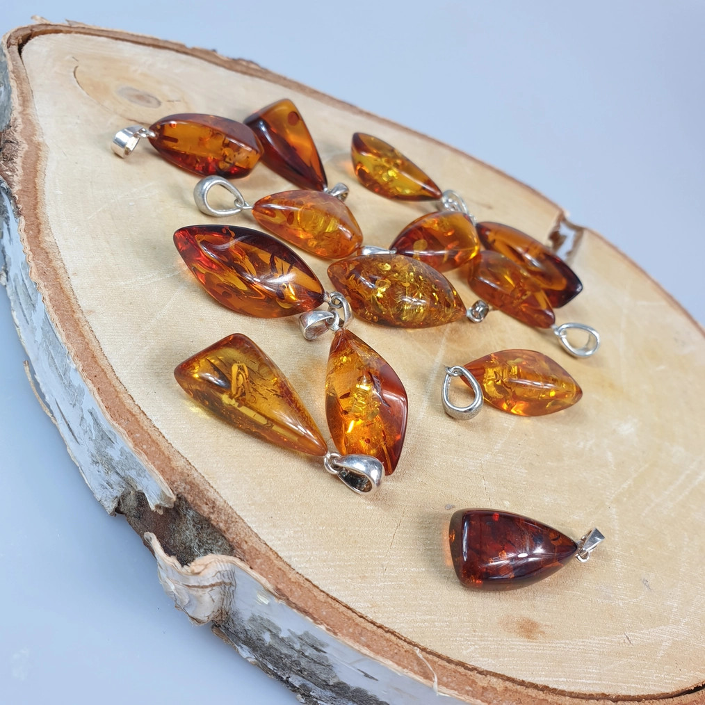 Hängen i äkta baltisk bärnsten. Små, mycket söta bärnstenshängen, 1 st, 2–3,5 cm.
