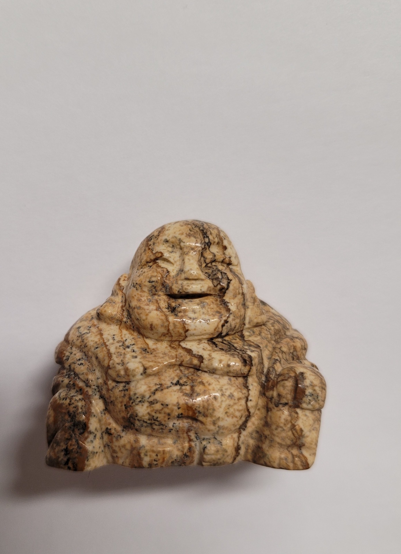 Liten Buddha i jaspis med vacker färgvariation. Denna sten sägs ge jordande energi, inre styrka och balans, samtidigt som Buddha-formen symboliserar frid, visdom och harmoni. Perfekt som liten dekorativ kristall eller symbol för lugn och fokus.