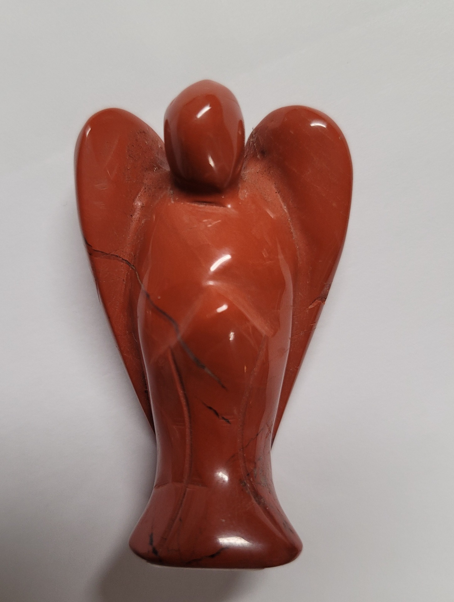 Liten skyddsängel i jaspis, en sten som förknippas med beskydd, stabilitet och trygghet. Jaspis sägs ge inre styrka och jordande energi, vilket gör denna lilla kristall till en fin symbol för skydd, balans och stöd i vardagen.