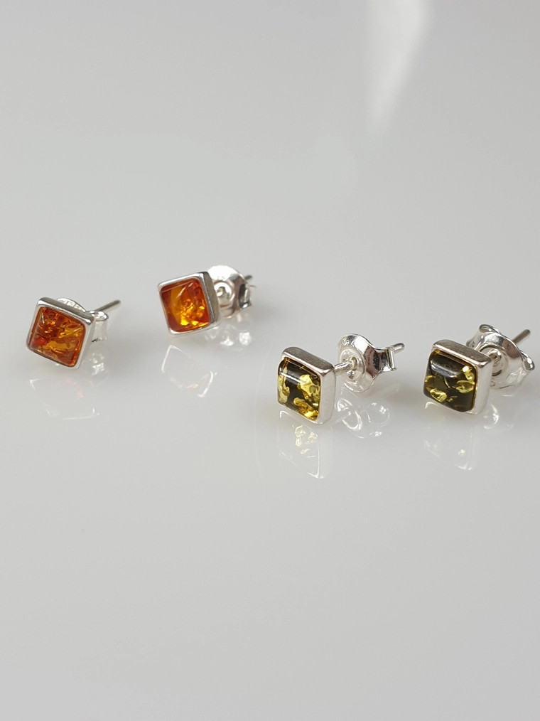 Finns i liten fyrkantig form. Med stämplar. Stenstorlek 0,5 cm. Endast äkta, verklig, inte pressad, autentisk, naturlig baltisk bärnsten. Produkten kan ha naturliga imperfektioner.