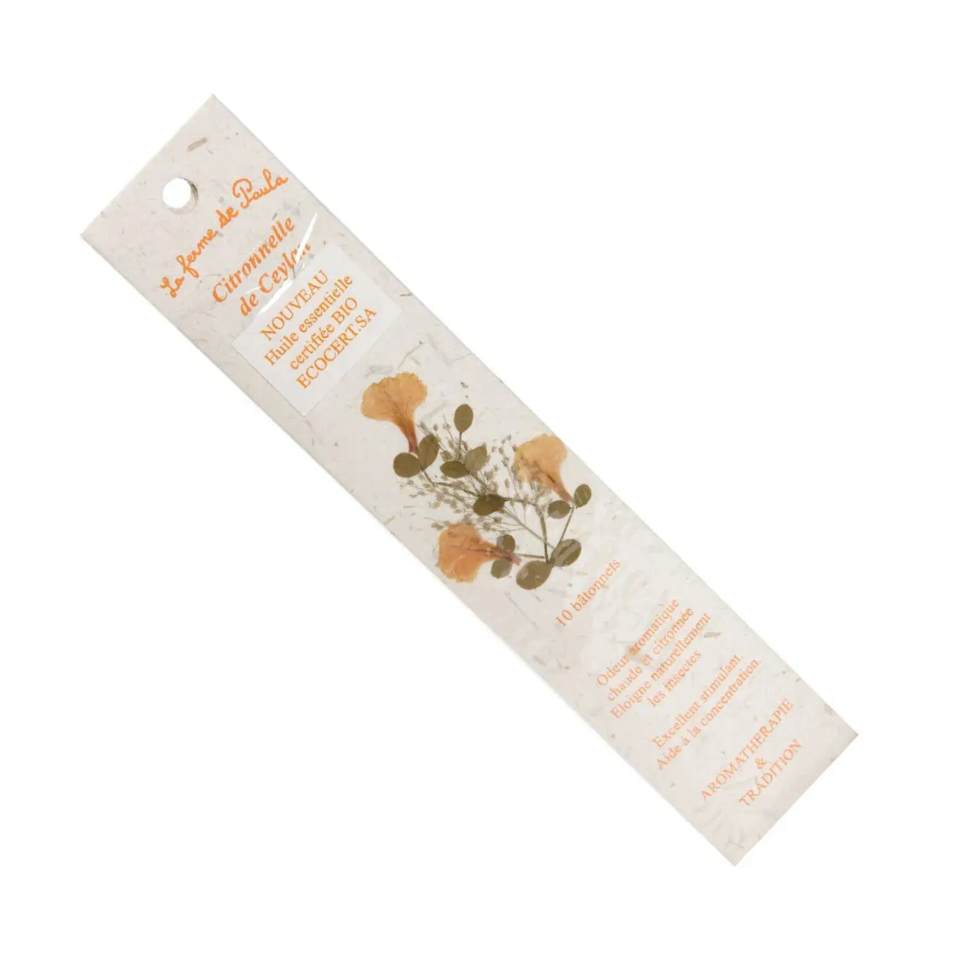 Varje pinne rullas för hand och torkas sedan i solen. De förpackas i ett hantverksmässigt emballage av handgjort papper och dekoreras sedan med torkade naturliga blommor.